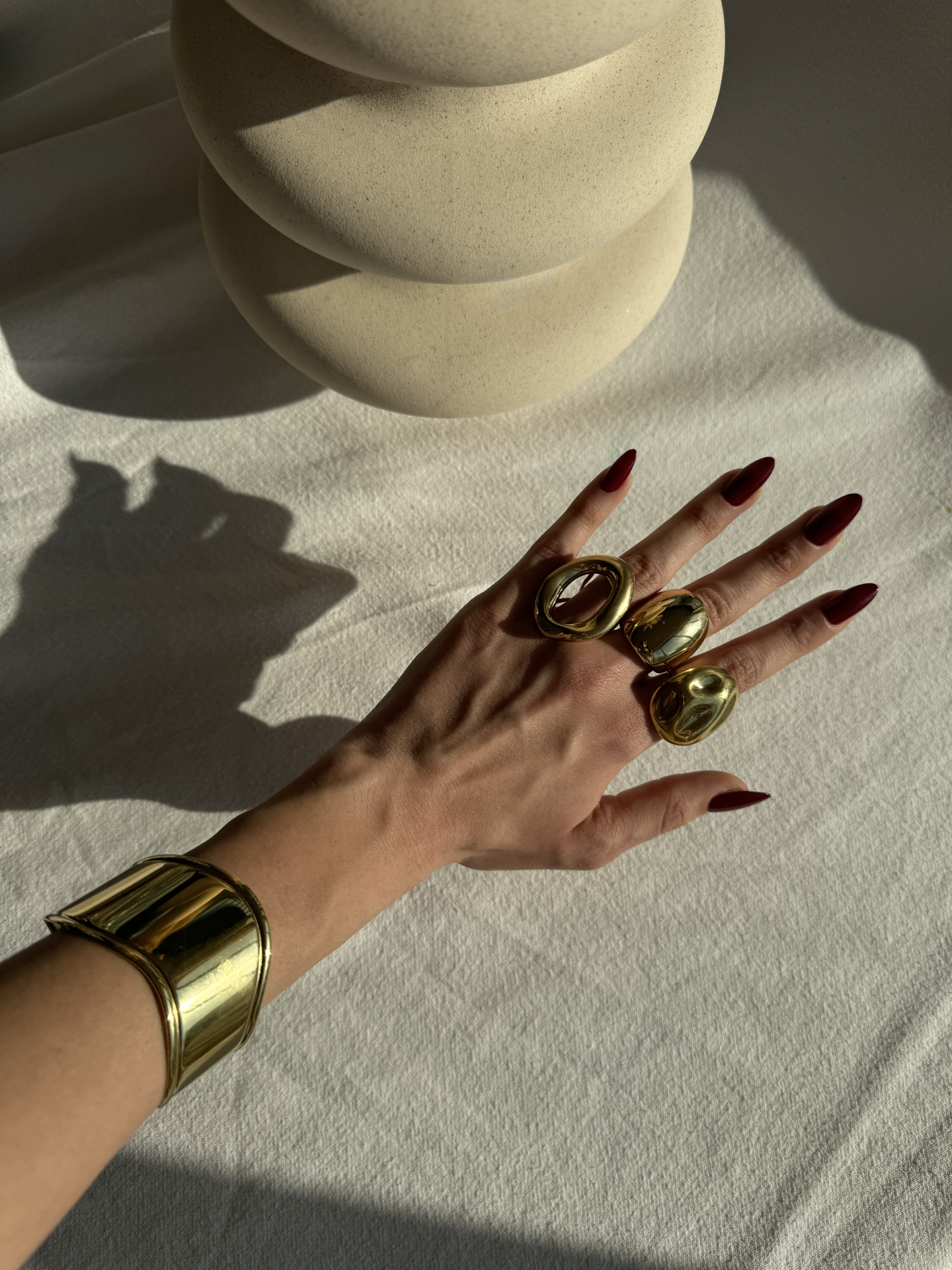 Découvrez Ezra, une manchette sculpturale qui incarne la modernité et l'élégance. Conçue en acier inoxydable doré, cette pièce et minimaliste s'impose comme un incontournable pour un style lumineux et sophistiqué.